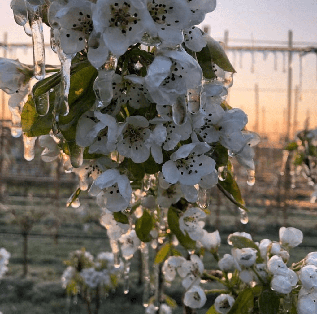 A few weeks ago, Biohof Schloffer farm, a customer of our partner Fruit Security, published many suggestive pictures on social media about this new frost protection technique, aimed at protecting the plants in an area where the night temperature reaches -4°C. This is not an extremely low temperature, but it can be enough to ruin the blossom. The damage caused by frost ranges from a low quality of the harvest to total or partial loss of production.