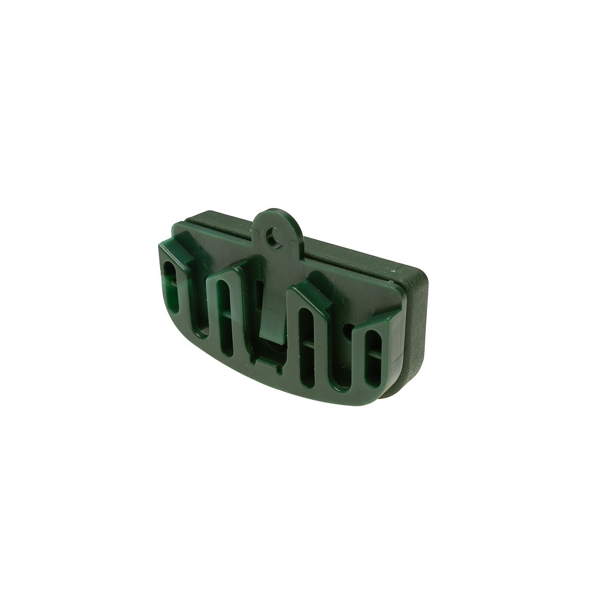 Het stevige oog aan de bovenkant van de plaket biedt de mogelijkheid om een karabijnhaak te monteren. Hierdoor kan het zijnet moeiteloos gekoppeld worden aan de lengtedraden van de constructie. Dit zorgt voor een stabiele, veilige en gemakkelijk te onderhouden montage, zowel tijdens het seizoen als bij winteropslag.